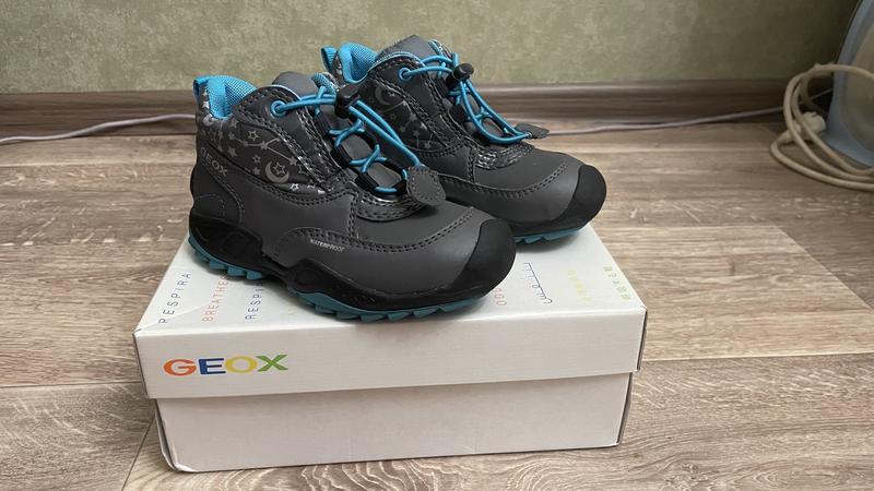 Майже нові чобітки Geox 28р. на ніжку від 17 до 17,5 см., у свої коробці. Унісекс, підходять як дівчатам так і хлопцям. Вони waterproof , дуже зручні.