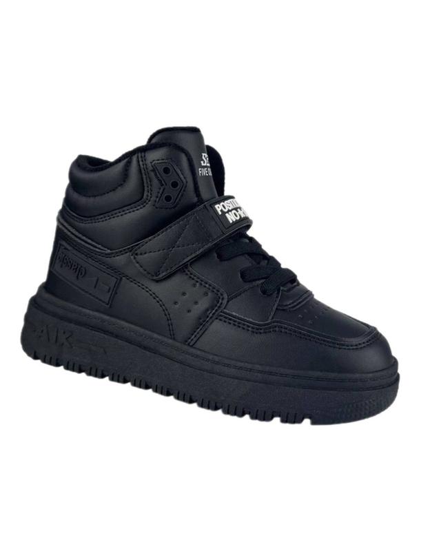 Кроссовки для мальчика, черного цвета Тип - высокие На липучке и со шнурками Изготовлены из эко-кожи Подошва: ПВХ, подклад: текстиль и флиз Замеры по стельке 32-20.5см 33-21см 34-21,6см 35-22,5см 36-23,2см 37-23,5см