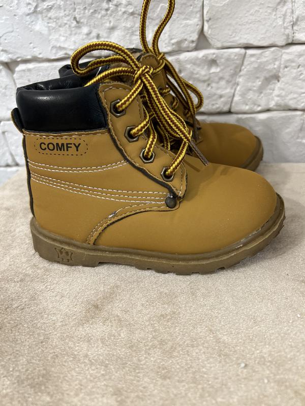 Гарні зимові чобітки Comfy , дуже стильні. Гнучкі, дитині буде зручно бігати, на шнурівці, що допоможе регулювати ширину стопи. Розмір на чобітках вказано 25 см., але устілка 15 см., ширина 6 см.