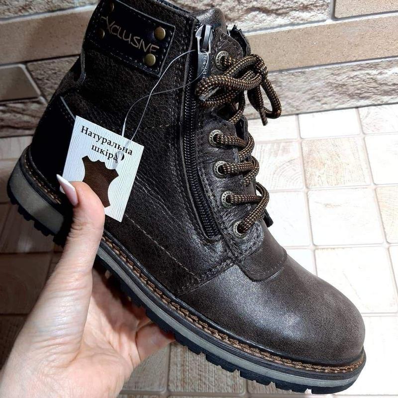 ЧЕРЕВИКИ НА ЗИМУ ДЛЯ ХЛОПЧИКІВ З НАТУРАЛЬНОЇ ШКІРИ Актуальний нині варіант . У них ніяка морозна погода і сніг нестрашні. Модель цих черевиків досить висока, йде як напівчобіток .У них ніжки вашої дитини будуть сухими і теплими. Дуже теплі, тому що всередині дуже щільна набивна вовна. Зручно одягати! З боків є 2 робочі блискавки, а спереду по підйому регулюються шнурком. Нековзка рифлена підошва. Комфортні та зручні