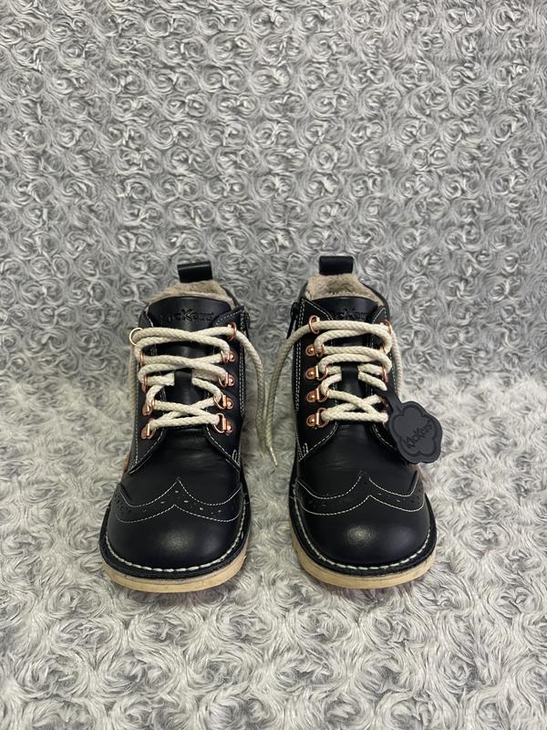 💙 Дитячі теплі якісні шкіряні черевики унісекс в темно-синьому кольорі від Французького 🇫🇷 бренду KICKERS FUR HIKER 💛 Супінатор присутній на устілках це - ортопедична вставка або частина устілки для взуття. Ці чоботи, підбиті затишним штучним хутром, забезпечують тепло та комфорт, що робить їх ідеальними для холодної погоди. Міцна гумова підошва кремового кольору забезпечує чудове зчеплення та стійкість на різних поверхнях, забезпечуючи довговічність та підтримку для активних дітей. Дитячі чоботи Kickers Fur Hiker, ідеально підходять для пригод на свіжому повітрі або щоденного носіння, поєднують стиль, комфорт та функціональність для ніг, що ростуть. 💙 Гарно виглядають на ногах 💛 Приємні для ніг 💙 Розмір по бірці 35 по устільці 22 см 💛 Зроблено в Франції Стан : Ідеальний без нюансів
