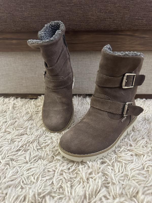 Відмінний стан. Без дефектів. Розмір 31. Устілка 20 см. Зверху натуральна замша, всередині утеплені штучним хутром. Зручні та легенькі.