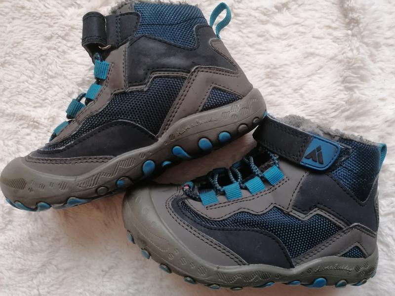 Стан цілому гарний. Є нюанс на фото останньому-клеіла мікро тріщіну.. . Теплі та легкі, можна на теплу зиму, в середні утеплені, дивіться фото.Лита підошва-носки непозбиваються. Устілка-17,7 см. Розмір 27.Липучка тримає дуже добре