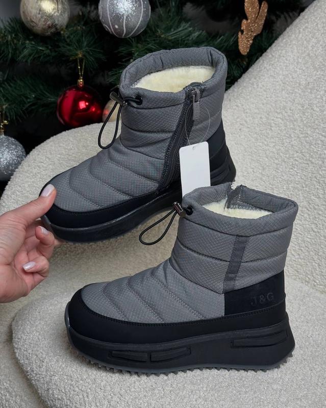 Еко шкіра +водовідштовхувальна плащівка Водовідштовхюючі ,ніжка не промокне та буде завжди тепла. Легкі. Носочок прорезинений Всередині натуральне густе хутро Збоку є замочок Розміри 32р-20 см 34р-21 см 35р-22 см 37р-23 см