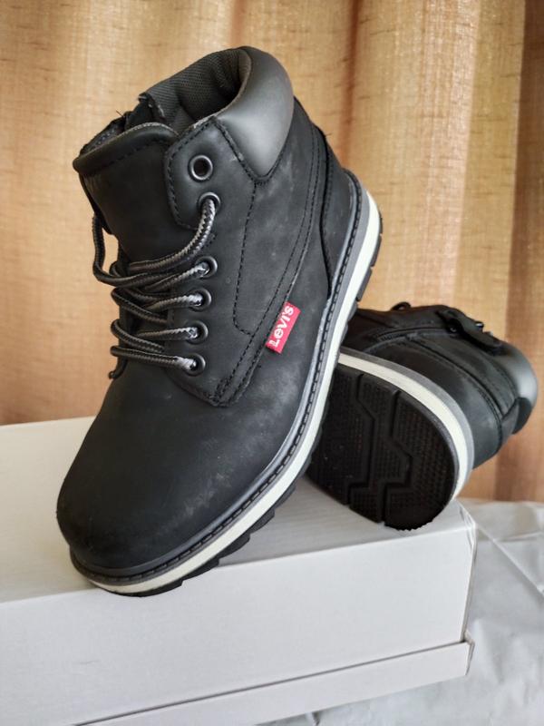 Черевики для хлопчика фірми levi's розмір 32 . Устілка 21см, в доброму стані, на правому носочку є невеличка потертість. Застібка шнурки і змійка . Колодка фіксується хлястиком на липучці щоб не розсувалась змійка.