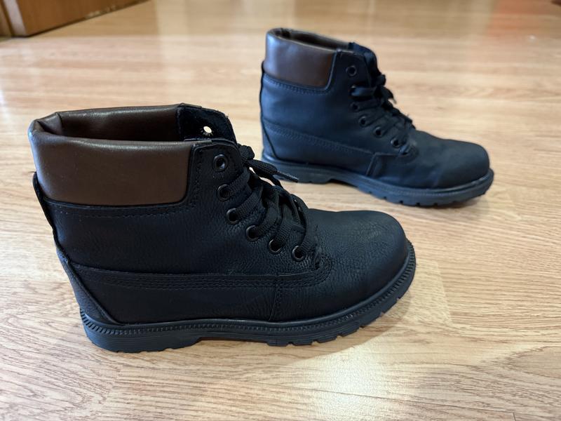 Майже нові чобітки. Штучна якісна шкіра. Тепленькі. Стильні. А осінь або зиму. Устілка вклеєна, заміряти не можу. Ідуть розмір-в-розмір