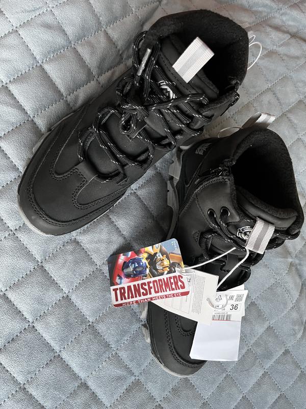 Продам нові крутезні черевики з серії Трансформери, у сина за місяць встигла вирости стопа, тож до зими в них просто не влізе (( Дуже класні, мають і шнурівку, і блискавку, сірі елементи світяться в темряві. На стопу до 23 см максимум.