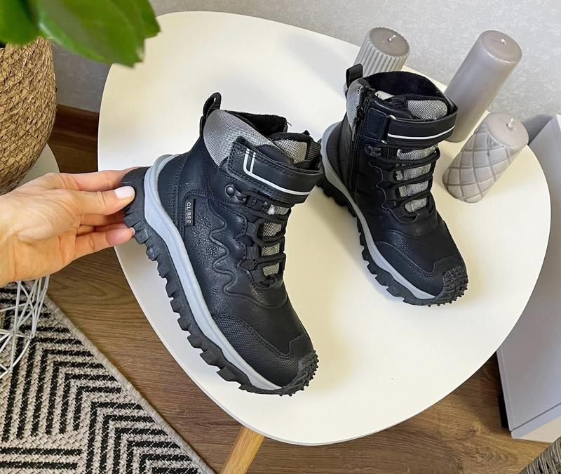 Суперовые ботинки для мальчиков из новой коллекции Качество на высоте фирма Clibee Верх качественная экокожа. внутри овчина (60%) Фиксация молния. Липучка шнуровка-резинка ЧЕРНЫЕ а сочетании с серым ЦИНА 1280 33 размер 22 см