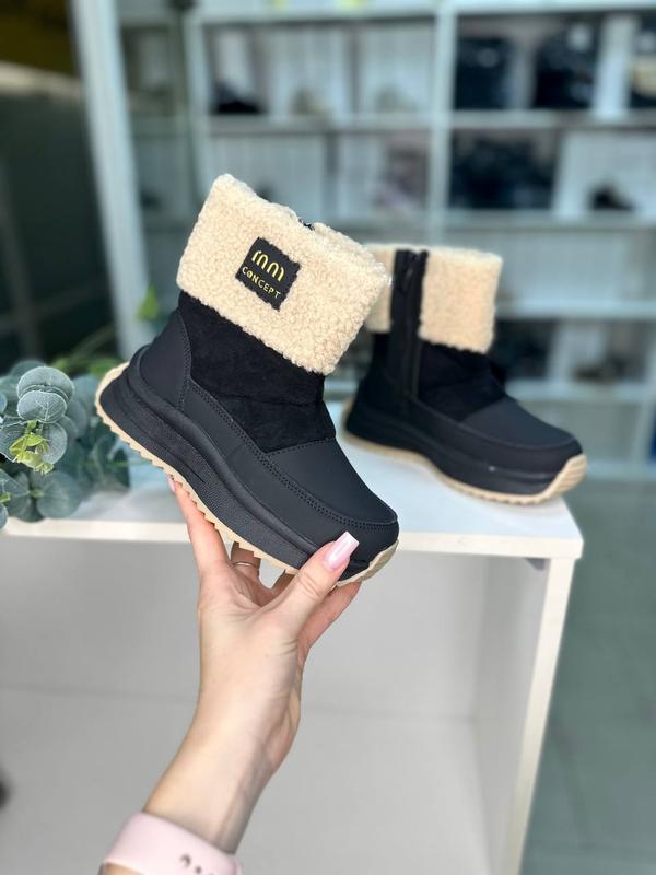 Найкращий варіант на зиму для старших дівчаток ❄️ Маємо у двох найгарніших кольорах: ▪️Чорні ▪️Молочні Верх - екошкіра та нубук😍 Хіт сезону❤️🔥 Всередині утеплені набивною овчиною, устілка теж утеплена 👌 Присутній боковий замочок Підошва не слизька Замір всередині, устілка із загином Розміри: 32р - 20 см 33р - 20,5 см 34р - 21,5 см (2) 35р - 22 см (2) 36р - 22,5 см 37р - 23,5 см