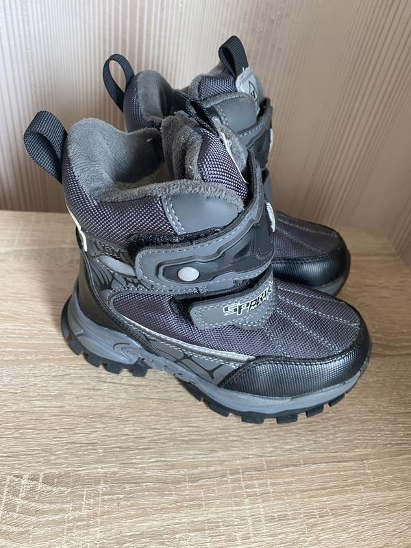 Зимові сапоги для хлопчика, теплі, зручні, носили один сезон, у відмінному стані! Ніжку фіксують 2 липучки, збоку є замочок. р.29 - 19 см.