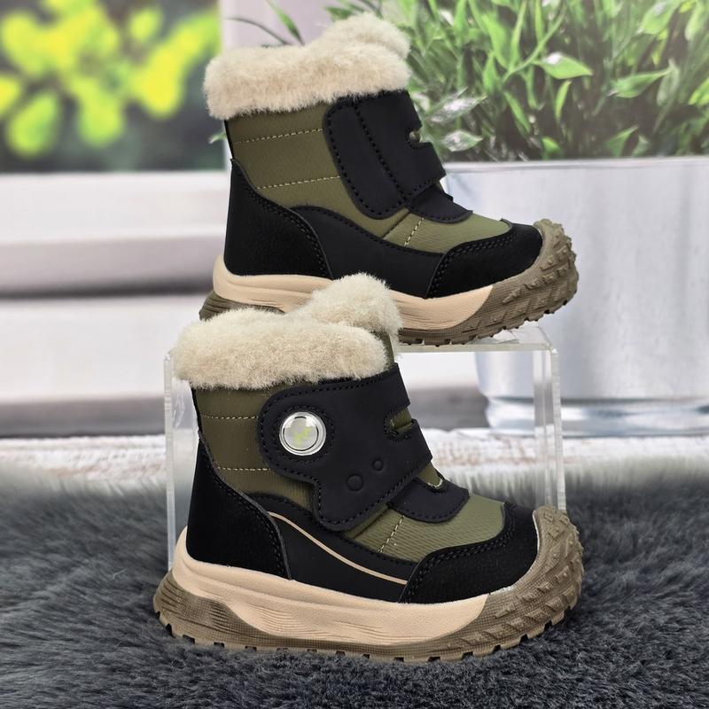 Зимові черевики для хлопчика Tom.M виготовлені зі штучної шкіри кольору хакі з елементами чорного. Усередині модель утеплена овчиною, яка забезпечує комфорт і тепло за низьких температур. Підошва з ПВХ із рельєфним протектором забезпечує стійкість і амортизацію під час ходьби. Зручна застібка на липучках дає змогу швидко одягати взуття. Висота халявки становить 10,5–11,5 см, що забезпечує надійний захист від холоду. Підходять для повсякденного зимового носіння та прогулянок. Основні характеристики Матеріал верху: штучна шкіра Матеріал підкладки: овчина Матеріал устілки: овчина Матеріал підошви: ПВХ (полівінілхлорид) Тип підошви: рельєфна Висота підошви: 2-3 см Висота моделі: 10,5–11,5 см Сезонність: зима Особливості Застібка на липучках Тепла підкладка з овчини Міцна рельєфна підошва Колір хакі з контрастними елементами Розмірна сітка моделі 23 — 14,5 см 24 — 15 см 25 — 15,5 см 26 — 16 см 27 — 17 см 28 — 17,5 см Перед оформленням замовлення уточнюйте наявність розміру!! Заміри устілки ми робимо самі, вручну. Відсилання Нової або Укрпошта. Оплата здійснюється на карту Приват банку або накладеною платежою, з мінімальною передоплатою на доставку. Або ж можете скористатися безпечною оплатою через Шафу.