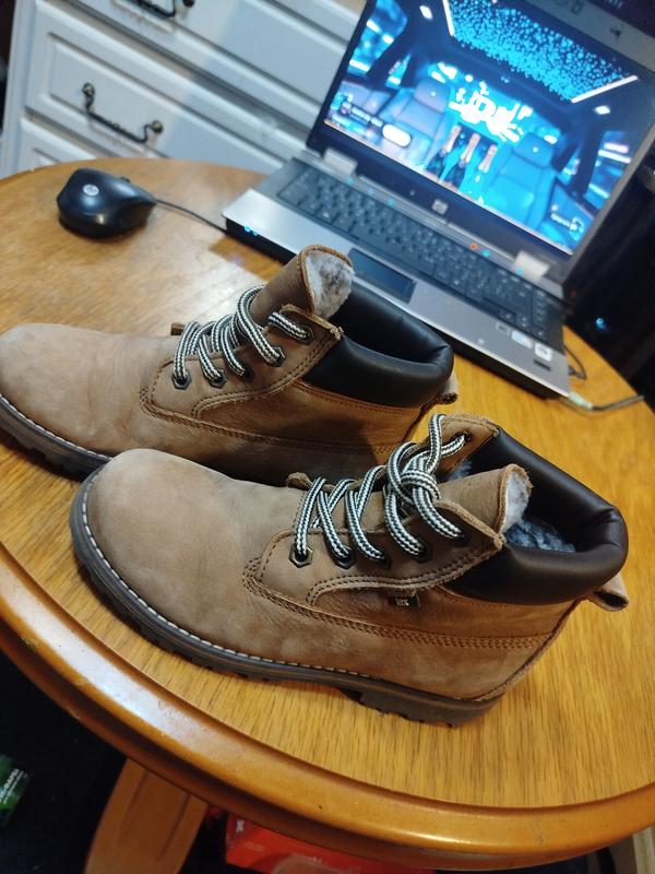 На изображении - пара коричневых ботинок от бренда Froddo. Эта компания специализируется на изготовлении детской обуви. Материал верха: Натуральная кожа, в том числе водоотталкивающий нубук. Подкладка: Теплая шерстяная подкладка или овечья шерсть, обеспечивающая тепло в холодную погоду. Подошва: Гибкая резиновая подошва с хорошим сцеплением, поддерживающая естественное движение стопы. Производство: обувь Froddo разрабатывается и производится в Хорватии.