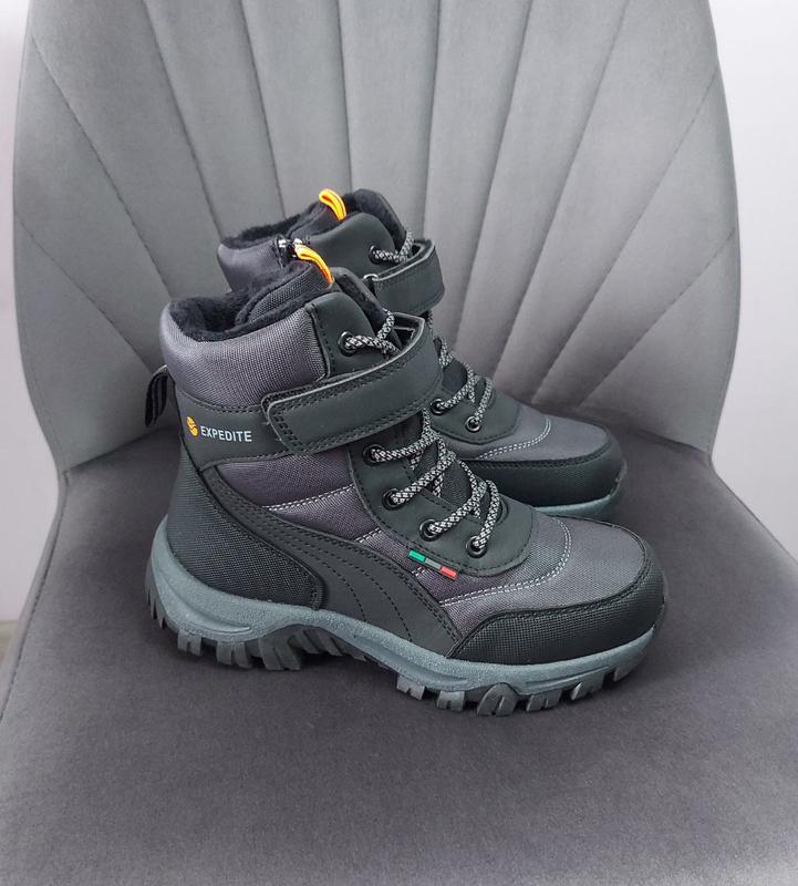 💜 ЧОРНИЙ + СІРИЙ Розмір: 35 - 23см 36 - 23,5см 💜 Круті зимові черевики для хлопців від Jong-Golf, - верх еко шкіра та водовідштовхуючий матеріал, - всередині повністю утеплені 60% натур.овчинкою, - фіксація шнурками + липучкою, легко можна відрегулювати потрібний об'єм, - збоку на змійці, - присутні світловідбиваючі елементи, - легкі та зручні, хороша якість. Ціна - 1360грн