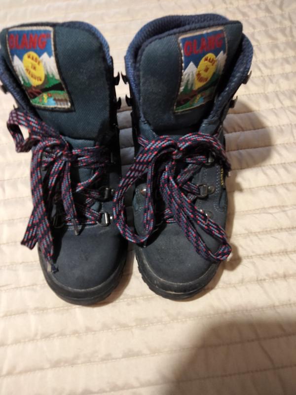 Трекінгові високі черевики для хлопчика в гарному стані без нюансів.Мають мембрану Olantex,завдяки якій ноги залишаються сухими і завжди дихають.Верх ботинок виготовлений із натуральної замші і текстильної сітки,що забезпечує повітряний обмін.Ця модель наділена підошвою Vibram,що наділяє їх гарною зцепкістю з асфальтом та землею.Ці ботинки гарно підходять для активного відпочинку,а також носіння кожного дня.Довжина устілки 22,5 см.