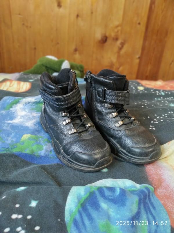 Сезон: осінь, весна, тепла зима. Утеплені флісовою підкладкою. Устілка шкіряна. Блискавки підшиті — розстібалися самі. Липучка гарна, шнурівка еластична. Довжина устілки 19.5 см. Носок прогумований. Торг доречний