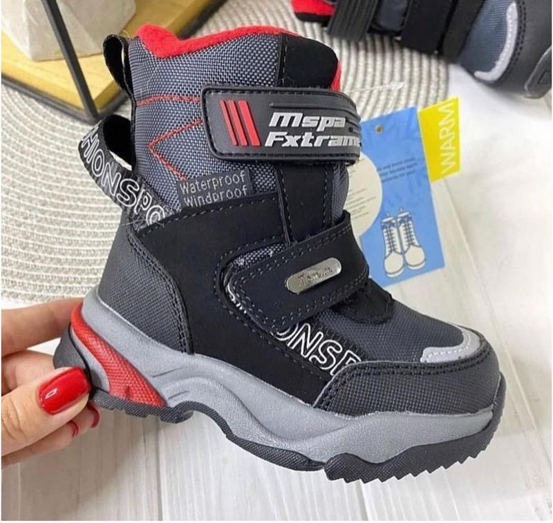 Легесенькі ,зручні та стильні термо чобітки для хлопчиків в наявності Якість перевірена роками Ззовні тканина Waterprof яка не пропускає вологу та холод Носочок захищений Пяточка плотна Протекторна підошва Всередині густе хутро 60% Фіксація ліпучками Температурний режим -30*С 22 розмір 14.3см