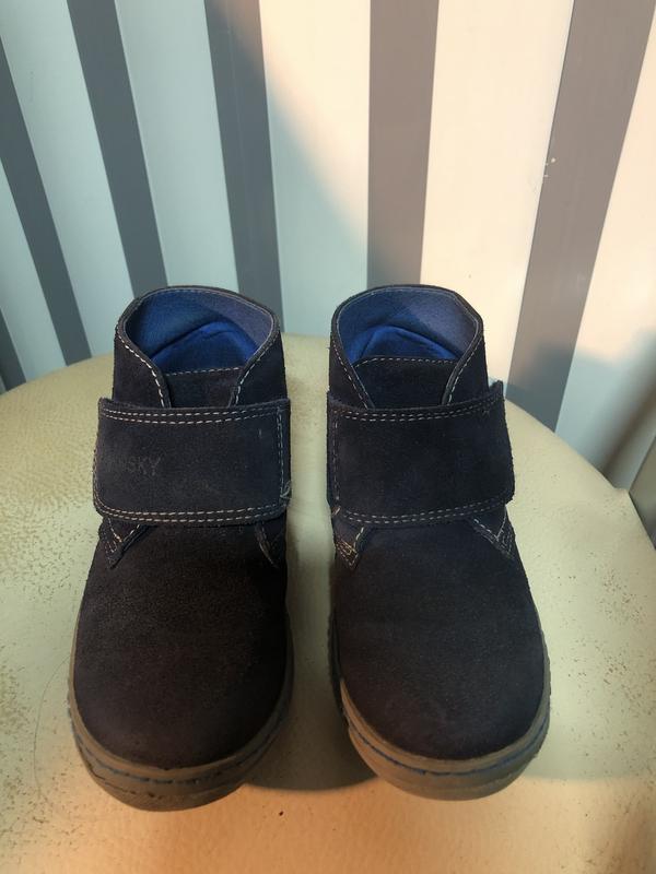 Ботинки на мальчика, натуральный замш, внутри кожа, ортопедическая стелька. Были куплены в Антошке, за 1450грн, носили пару месяцев и то на смену другим. Состояние твёрдая 4!Дополнительные фото в viber скину. Длина по стельке 20 см.