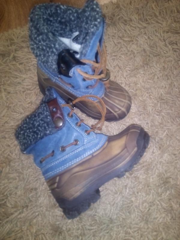 стан нових,дуже теплі взуття на зиму,в середині овчина, халява із натуральної шкіри,низ резиновий ,не будуть промокати ноги.устілка 15,5 див.