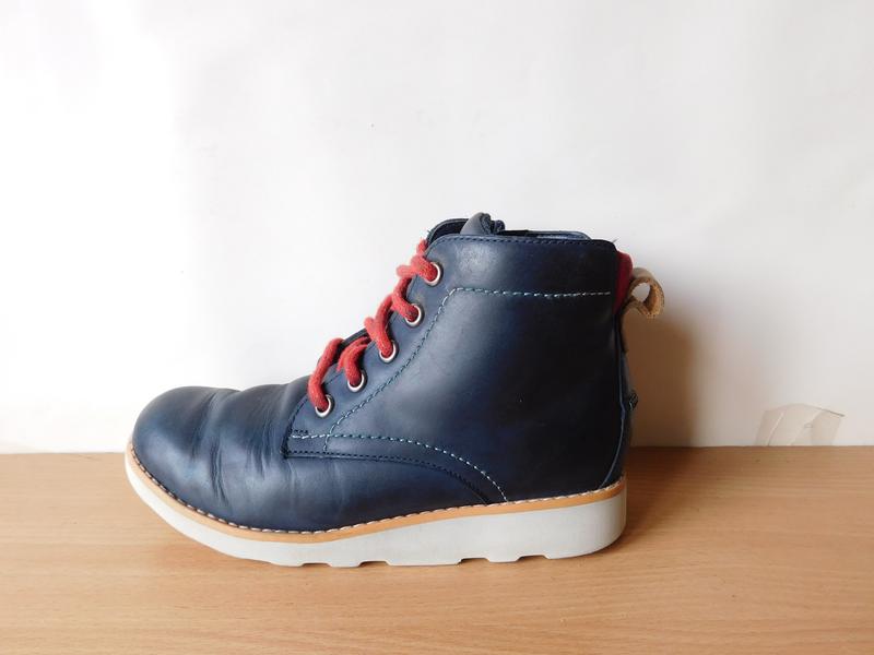 ботп/ Класні шкіряні черевики Clarks 32,5 р. по устілці 20,7 див. Шкіряні і дуже легкі. Стан дуже хороший, на носках є шорсткість, в шкарпетці не видно, є фото. Чисті. Застібаються на блискавку.