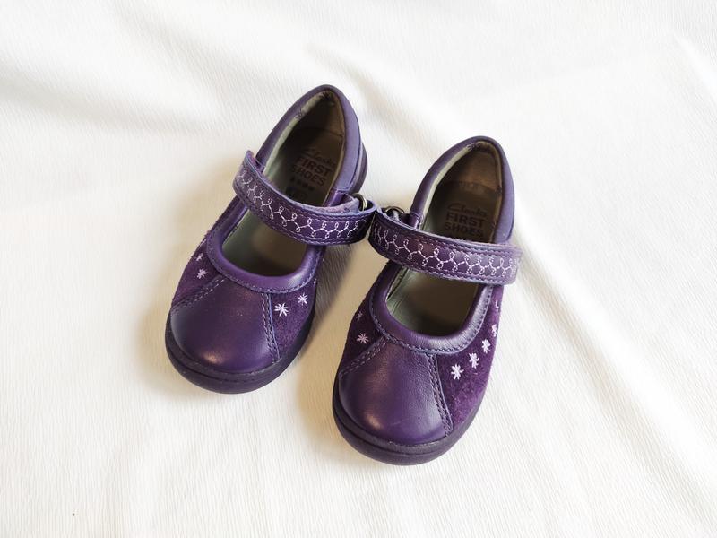Туфлі дитячі шкіряні фіолетові clarks first shoes (розмір 20, clarks 4-f)