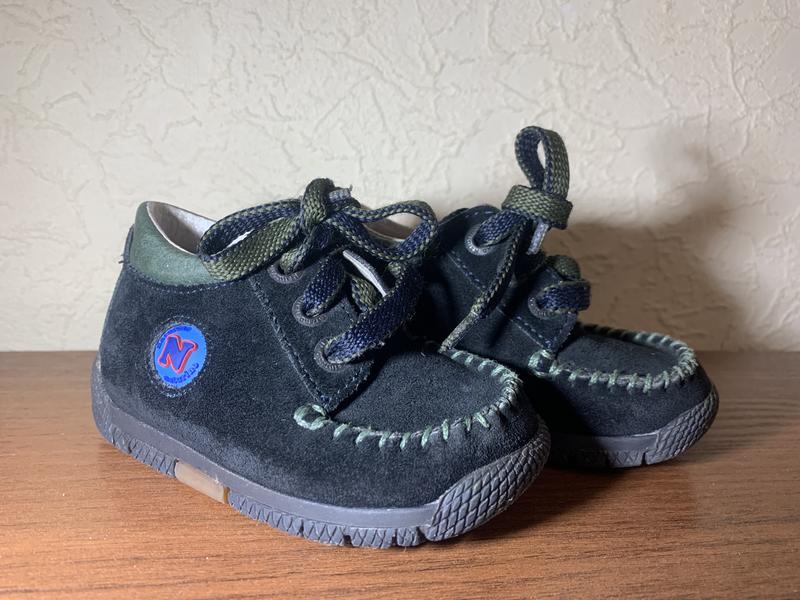 Дитячі черевички демісезонні , верх-замша, середина-шкіра , ортопедична , антибактеріальна устілка , 13 см по устілці ! Колір темно-синій , фото спотворює колір ! Були одягнені пару раз , малюк не ходив ще )