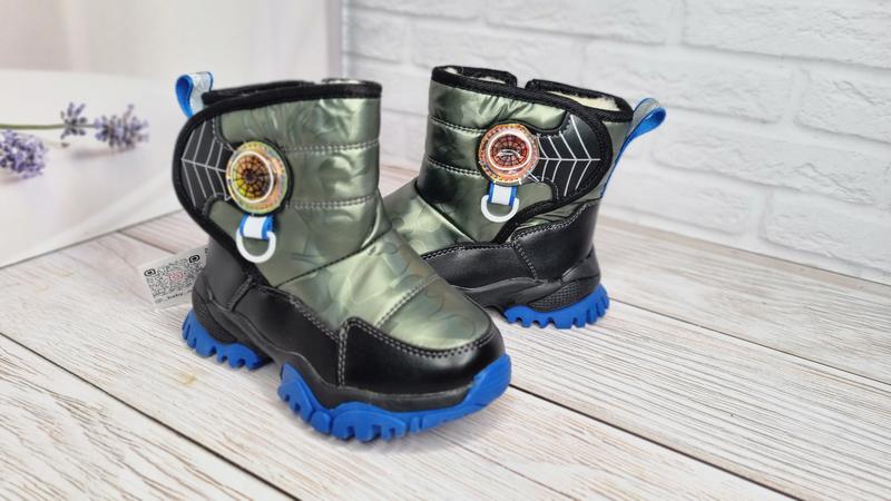 Зимові чобітки на хутрі для хлопчика Верх комбінований: еко-шкіра + плащівка Підкладка-вовняне хутро Підошва піна, легка. Висота підошви від 2 см до Зсм Розмір: 🌿 27 - 17 см 🌿 28 - 17.7 см 🌿 29 - 18.3 см 🌿 30 - 19 см ❌️ 🌿 32 - 20.5 см Вимірювання зроблено по устілці обов'язково залишайте запас на теплу шкарпетку, і щоб взуття було не впритул і не стискало ніжку