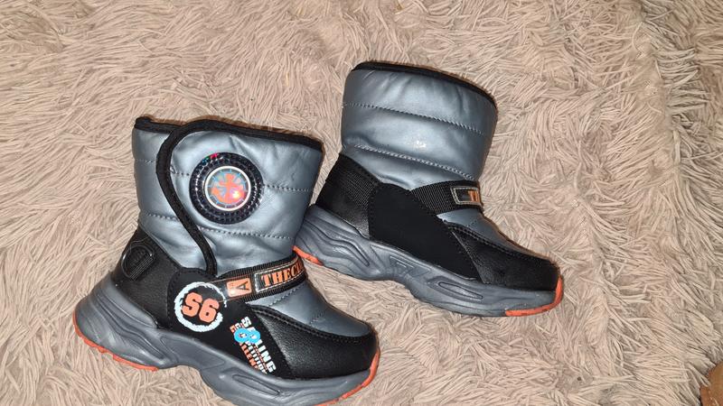 ❄️Зимові теплі сапожки, майже нові, носили мало так як почали вдягати в лютому місяці. Всередині овчинка, дуже тепла. Сапожки на широкій міцній липучці. Вони як нові, але спереді(дивіться останнє фото) , на носочках є нюансы, трохи потерті,і дитина трішки черкнула ручкой, але візуально не видно, якщо не приглядатись. Сапожки не промокають,з LED підсвіткою на якорі(див 1,2,3 фото) Дитині дуже подобаються, завжди хоче їх взувати. Дивіться всі мої оголошення, є і зовсім нові сапожки в продажі. Звертайтеся, з радістю відповім на всі ваші запитання🤗
