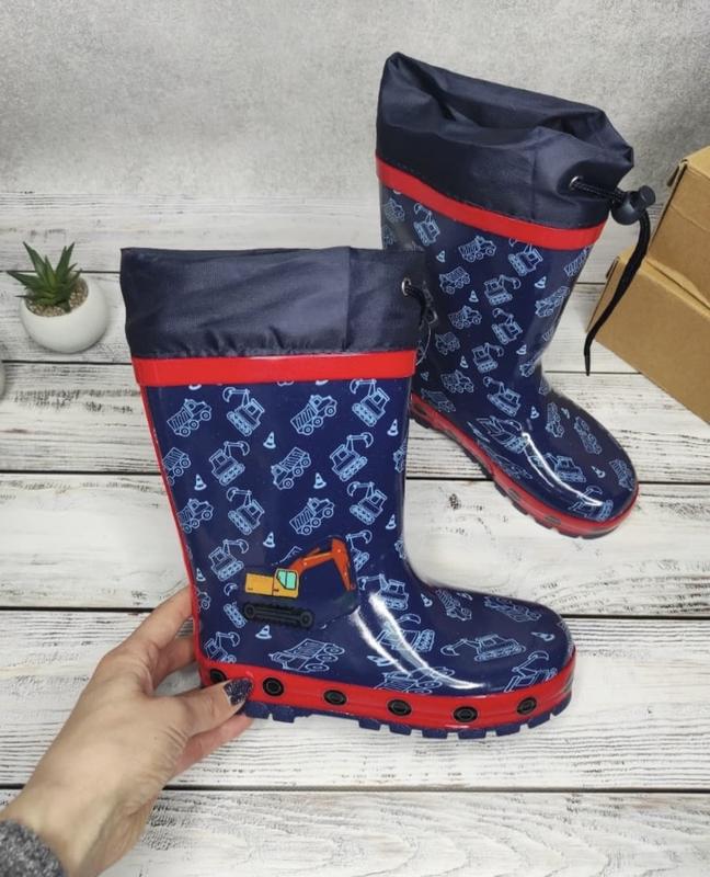 Чудовий варіант для хлопців 🚜 Гумові чобітки утеплені флісом 👍 Можна затягнути на куліску,щоб не попадала зверху вода 💦 Розміри 32 - 21 см 32 - 21 см Ціна 520 грн