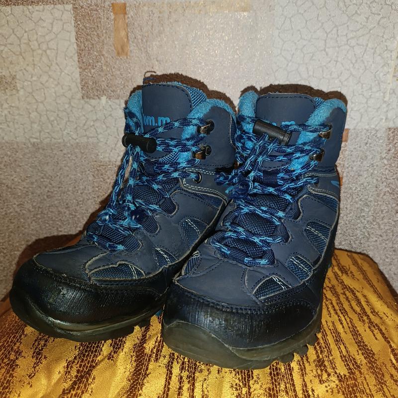 Фірмові чоботи Том.м. у чудовому стані! Не протікають! Дуже теплі! Розмір: 31 Устілка: 20.5 Шнурівка на кліпсах, що дуже спрощує застібання чобітків юному джентельмену. Із нюансів трошки потерті носочки, але то майже не видно.