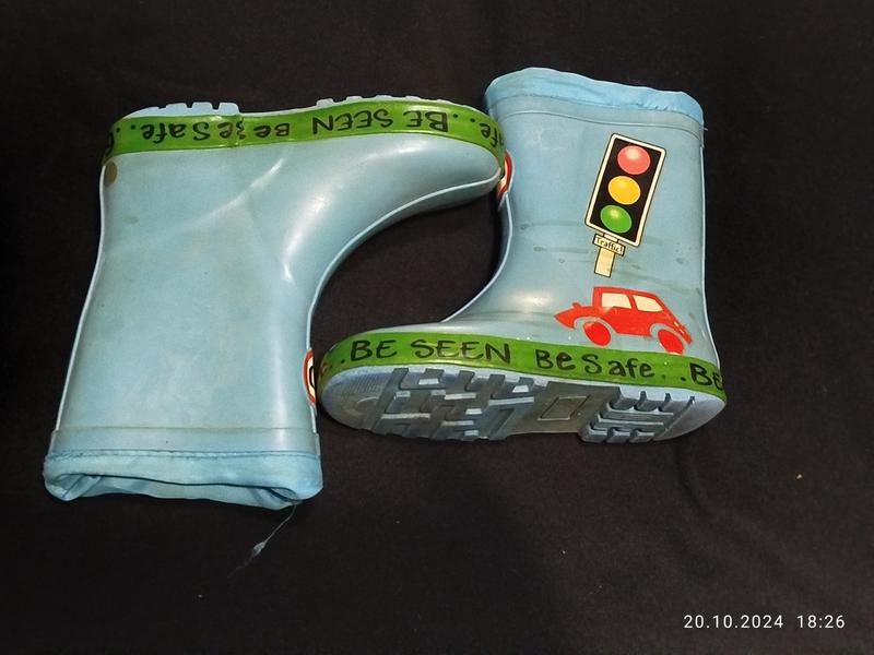 Мінімальне замовлення у продавця на 100 грн. Гумові чобітки блакитного кольору в хорошому стані, видно сліди носки. Довжина устілки 19 см. Модель 5289Б