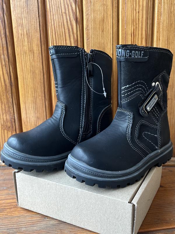 Новые демисезонные сапоги черного цвета, подойдут и мальчику, и девочке. На небольшом утеплении, на плюсовую температуру. Искусственная кожа, фирма John golf, проклеенные, протекать не имеют, но это не резиновые сапоги. Купила племяннику, не успела подарить и уже маленькие. Стелька не вынимается, сложно замерить, около 14,5 см. На ногу не более 14 см, это точно, лучше меньше.