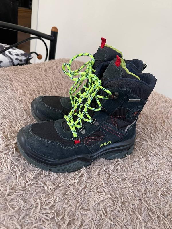 Дитячі зимові черевики Fila (оригінал) з мембраною. Розмір 37 Довжина устілки 24,5 см Стан дуже гарний Вони не тільки на шнурках а є і замок збоку.