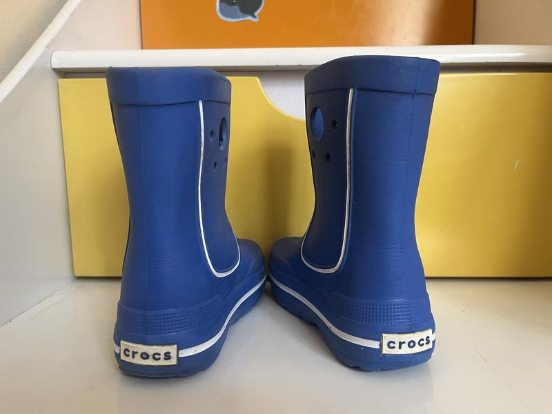 Дитячі чобітки Crocs в чудовому стані, ношені мало й акуратно. Єдиний нюанс - загубилися декоративні кружечки з внутрішньої сторони кожного чобітка. Розмір С 10-11.