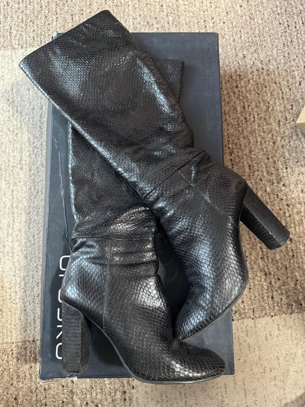 Шкіряні чоботи на підборах, бренд Braska 39 розмір, 25 см. Підбори - 9 см шкіра- імітація лусочок змії
