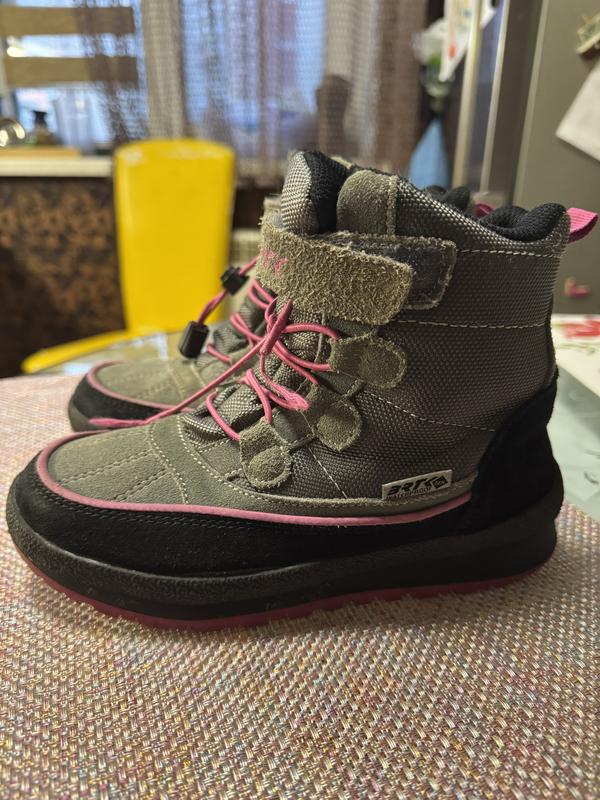 Теплі чоботи на дівчинку. Розмір 32. Єдине немає застібки на шнурках на лівому чоботі