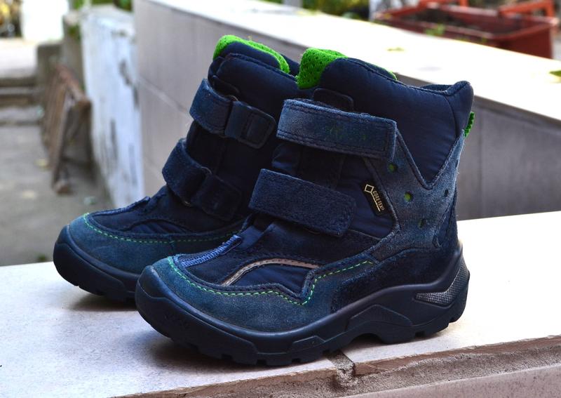 Зимові термосапоги Ecco Gore-tex 25р. Устілка від краю до краю із загином 16 см. Верх замша, усередині хутро не збивається, липучки чудово.Сстань дуже гарний, без моментів і нюансів. 800 г.