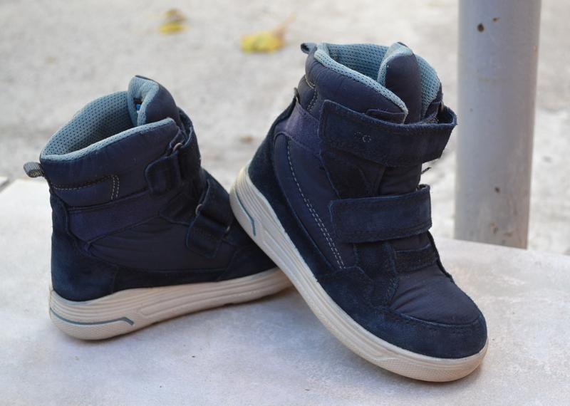 Продам зимові термосапоги Ecco Goretex 28р. Устілка від краю до краю з загином 18 см. Верх натуральна замша, всередині хутро не збивається, липучки працюють чудово.Зостання дуже гарне. Без прихованих моментів і нюансів. 950 г.