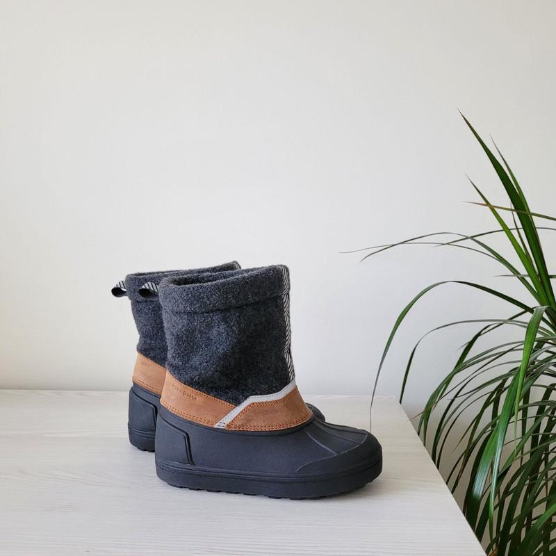 Бомбезні утеплені чобітки від бренду Ecco. Низ чобітка шкіра(нубук) + войлок(верх) + гума (низ) Серединка м´якенька, хутряна Устілка товста, войлочна Підошва неслизька, тракторна Не промокають завдяки технології HYDROMAX Мають рефлективні вставки Легенькі довж устілки 21.5, вся висота 20, окружність вверху 26 ------------------------- ❗️Взуття нове, без коробки, ОРИГІНАЛ ❗️