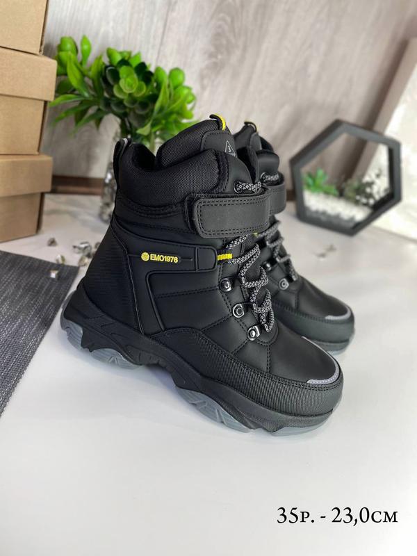 Стильні зимові ботінки. Спереду фіксація на липучку та шнурівку, збоку блискавка. Усередині - натуральне хутро (овчина - 60%). Устілка також утеплена. Матеріал верху водовідштовхуючий. Носочок і п'яточка прорезинені для захисту від збивання. 1400грн 35р. - 23,0см Вимірювання зроблено всередині по устілці особисто мною, похибка 1-2мм допустима.