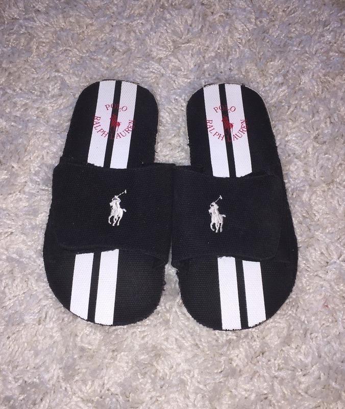 Брендові шльопанці Ralph Lauren р. 33-34 по устілці 22см. У гарному стані, ношені буквально тиждень. Із слідів носіння - на задник напис POLO подряпина (дивіться фото). Матеріал: бавовна. Повнота регулюється липучками. Колір: чорний, білий.