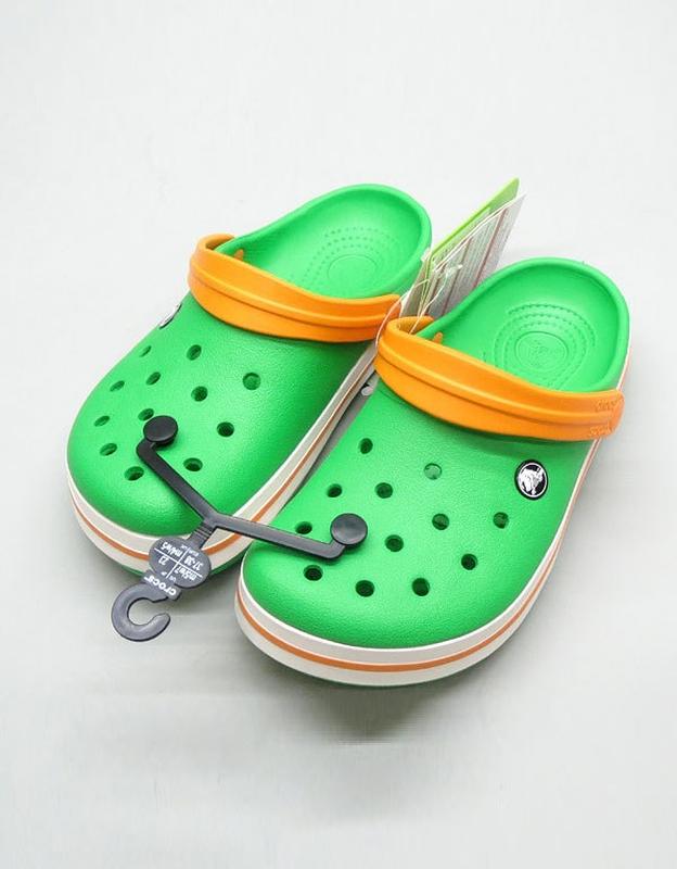 Крокс крокбенд клог зелені crocs crocband clog grass green/white/blazing orange