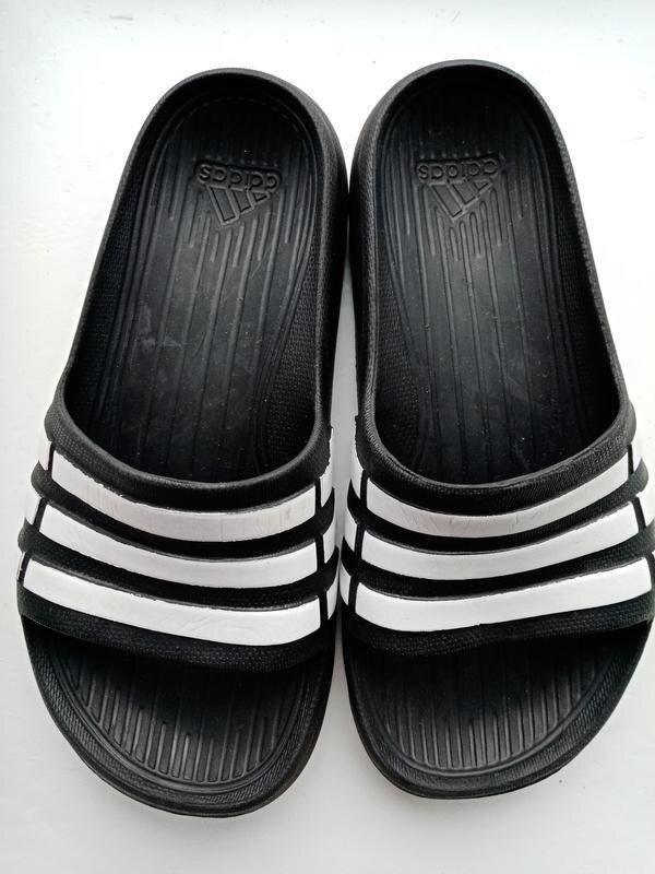 Сланці Adidas для повсякденного носіння та пляжного відпочинку. Модель повністю суцільнолита без швів і кріплень, що робить її "вічної" навіть у повсякденній експлуатації. Зносостійка гума тапок також має чудові амортизаційні якості, даючи змогу не помічати тривале перебування в дорозі. • Виконані з високоміцного м'якого матеріалу ЕВА. • Конструкція сланців цілісна. • Підошва плоска. • Є амортизація. • Колір чорний. • Зверху декоровані трьома тонкими смужками. • Не бояться води, швидко сохнуть і легко миються. Розмір вказаний EUR/К2 Наш розмір 32-33 Устілка 21-21,5 см
