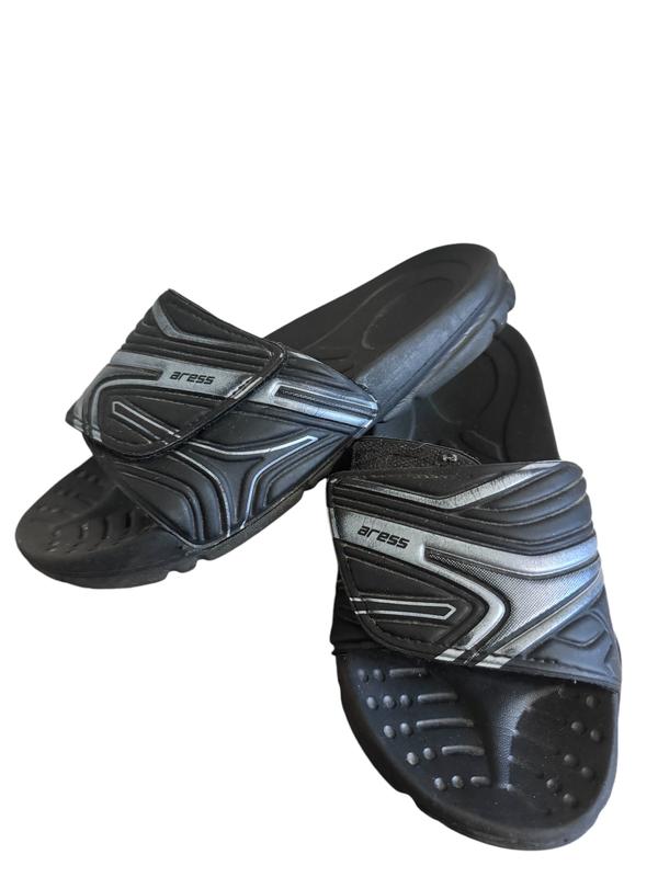 Р. 36 дитячі чорні шльопанці на липучці Aress У дуже гарному стані. Виробництво — Малайзія. Широка липучка дає змогу зручно регулювати шльопанці по нозі дитини. Довжина устілки: 22 см. Дивіться інші свої оголошення й заощаджуйте на доставці! Під час купівлі декількох речей знижка.