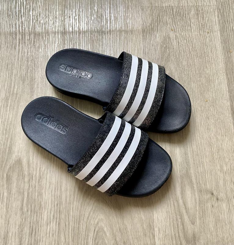 Шльопанці adidas 32 розміру. Неймовірно легкі і мʼякі, дитина ходила в них і казала ніби ходить по хмаринкам. Якість бомба. Довжина устілки 21,5 см
