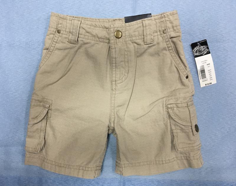 Шорти дитячі американського бренду First Wave , вироблені в Бангладеш , матеріал : 100% бавовна ! У поясі обсяг регулюється гумовими затяжками , по боках кишені на кнопках ! Розмір 3Т ( 3-4 роки ) : ПОТ - до 24 см , ПОБ. - 32 см, довжина - 30 см, ширина штанини ( низ ) - 18 см.