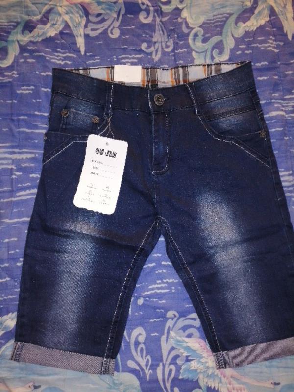 Милі темно сині джинсові шорти з підкатом внизу штанини. Підкат пришитий нитками. Прошиті білою ниткою. Спереду та ззаду по 2 повноцінні кишені. На поясі утяжка є. Нові. Виміри: довжина виробу 48.5 см, внутрішній шов 27.5 см, напівобхват пояса 34 см, напівобхват стегон майже 41.5 см, напівширина штанини ляшка 23.5 см, низ 17.5 см, посадка перед 22 см, зад 31 см.