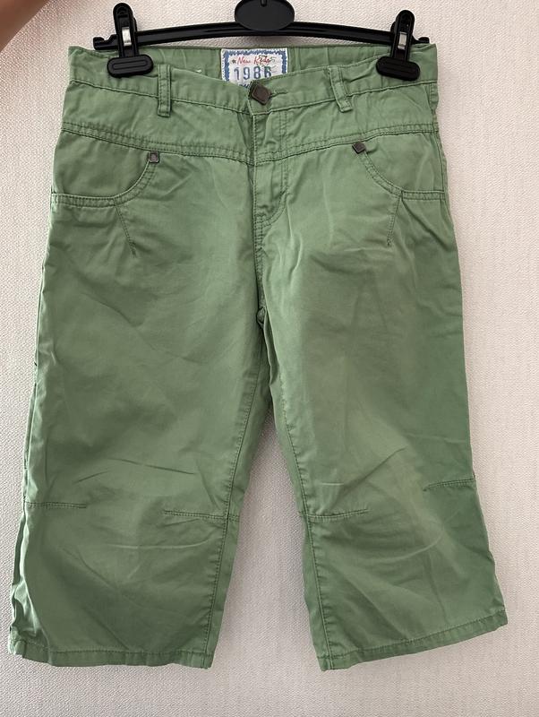 Шорты зеленого цвета. В отличном состоянии. Размер 156см. Замеры длина-62см, ширина пояса-37см( пояс регулируется резинками), длина вн. част ноги-37см, посадка спереди 24см.