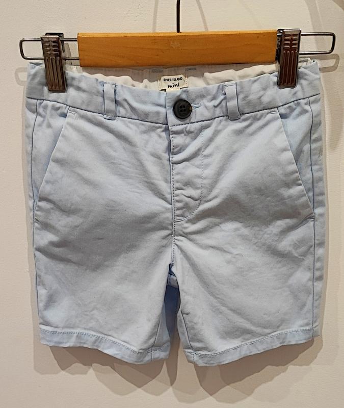 Шорти в ідеальному стані, без плям, колір світло голубий, ширина регулюється. На ріст 104 см. Є бічні кишені. Котонові Ширина-26 см, можна зробити вужчі Довжина- 28 см