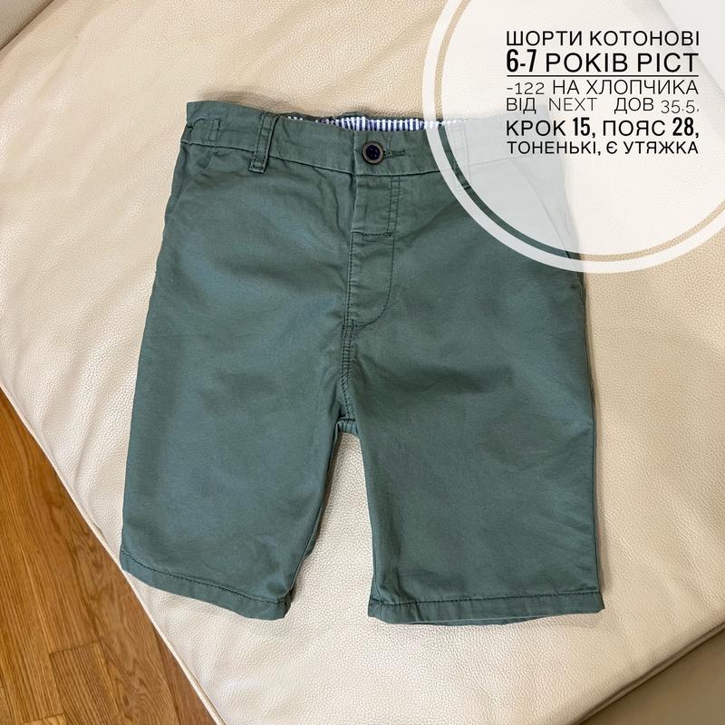 Шорти котонові 6-7 років ріст -122 на хлопчика від Next дов 35.5, крок 15, пояс 28, тоненькі, є утяжка