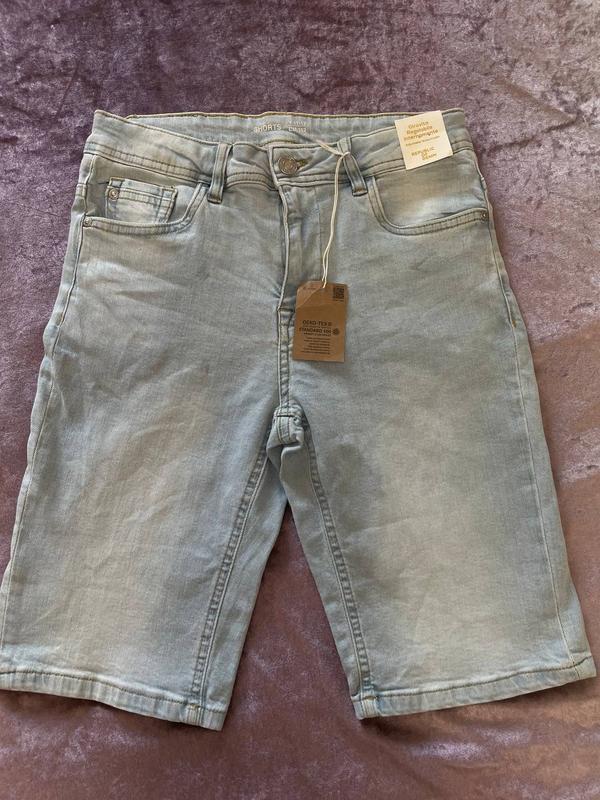 Джинсові шорти на зріст 152 см (11-11 років) Світло блакитний колір Стан нових , є плямки поправши. Не прали,щоб зберегти бірки Заміри: пояс пів обʼєм 34,5 см Довжина 50 см Посадка 24,5 см Бедра 42 см